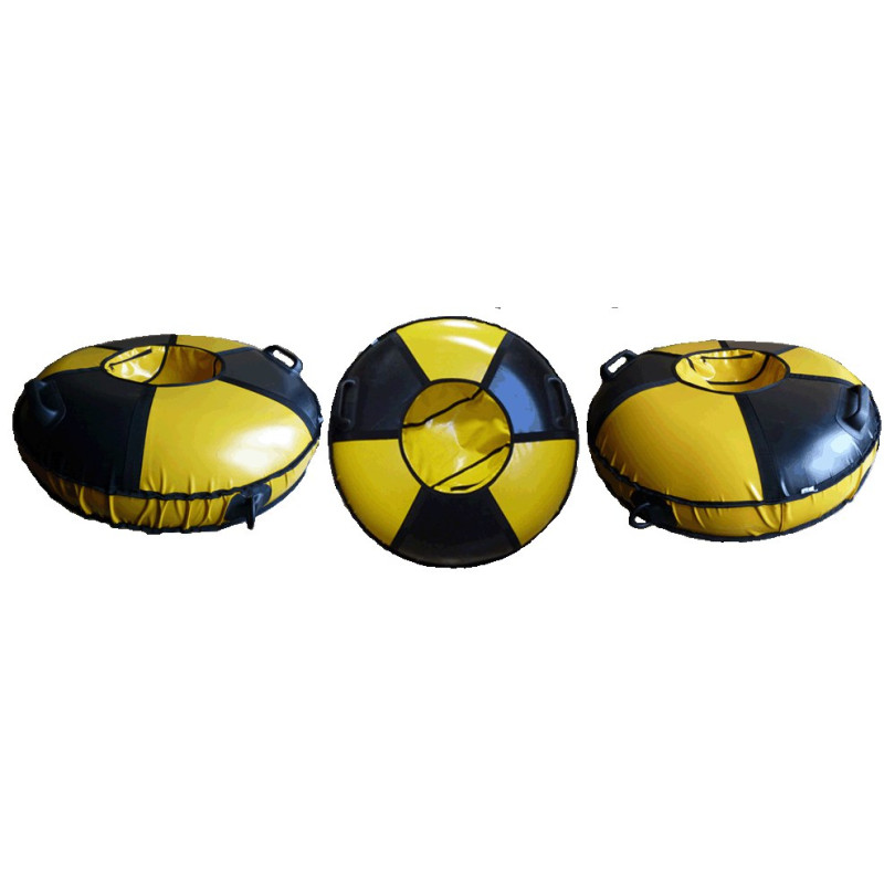 Санки ватрушка «Реактор» выпускаются диаметром 80,90,100 см. Ватрушки оснащены двумя клееными ручками и рымом для буксировки санок за собой с нагрузкой. Эта модель санок выполнена в сочетании черного и желтого цвета ткани ПВХ. По периметру санок имеется вставка из пвх ткани за счет которой санки при накачивании становятся выше и не теряют размер в диаметре в отличии от обычных ватрушек.